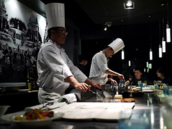 比起「Danny & Company」裡令人印象深刻的鐵板燒台與蔬果架上的色彩紛呈,新餐廳則是四方開闊但數量多了些的餐桌布置卻像是巴黎餐廳裡桌挨著桌的擁擠。
