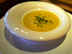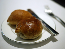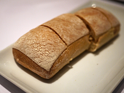 裝盛於木盤上的麵包嚐來外皮淺脆而內裡柔軟,輕抹上沾醬算是令人愉悅的起始。而凱薩沙拉拌上飽滿紮實燻鮭魚,以及帕瑪火腿裹水牛起司再加上芝麻葉,大概都算是簡單卻不失風味的傳統經典。只是,少了奇巧綴飾的搬弄揮灑,卻也少了誘人入勝的驚奇。