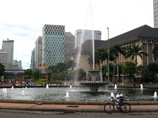 雅加達(Jakarta)是東南亞最大的城市之一,660平方公裡大的區域,聚集著八百五十萬人口。赤道邊的城市,似乎起得特別早,即便是天色依然未亮,街上卻已是熱絡異常,而路邊的小飲料店書報攤,甚至像是從未打洋般許持續通明。