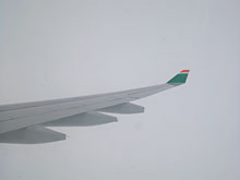 南中國海到馬六甲海峽的持續灰白色雲霧,一直讓人覺得不舒服。似乎,天氣不應該是這麼的昏沈,這裡的海,應該是光耀的碧藍,天,應該也是。飛機高度漸漸降到了6,500米,迅速趕到漲痛欲裂的頭顱,以及似乎與外界隔了千層屏障的聽覺,伴隨令人不悅的天氣嚴重蔓延。